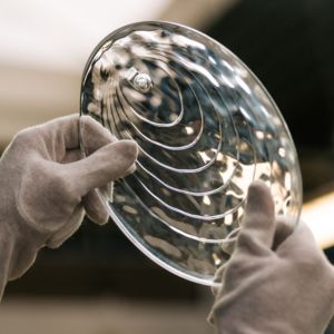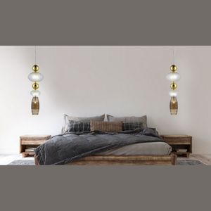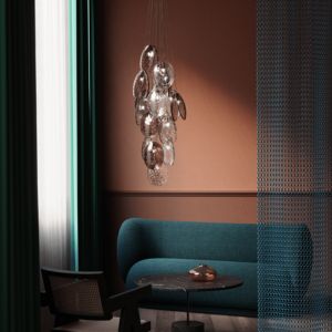 Frame : Metal in Chrome | Diffuser : Iridescent Glass | Wire : Transparent PVC