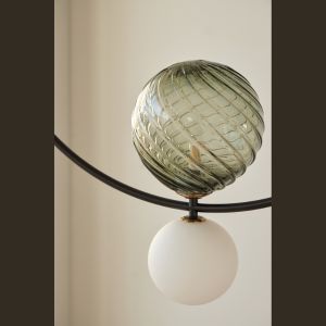 Metal : Matt black & Aged Gold | Glass: Opal & Striped clear glass
